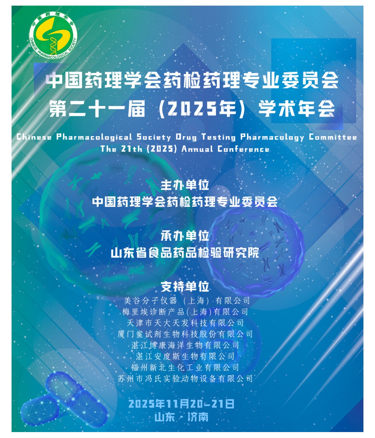 2025年11月20日—21日,中國(guó)藥理學(xué)會(huì)藥檢藥理專(zhuān)業(yè)委員會(huì)第二十一屆(2025年)學(xué)術(shù)年會(huì)在山東順利召開(kāi)。本次大會(huì)為總結(jié)我國(guó)藥檢藥理領(lǐng)域研究所取得的成果,加強(qiáng)我國(guó)藥檢藥理新成就和新經(jīng)驗(yàn)的交流,提高藥物有效性和安全性的研究水平,促進(jìn)藥品高質(zhì)量發(fā)展。