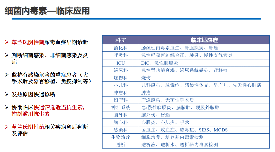 內(nèi)毒素:鑒別細(xì)菌感染(革蘭氏陰性菌),上機(jī)后1個(gè)小時(shí)內(nèi)快速檢測是否為革蘭氏陰性菌感染;